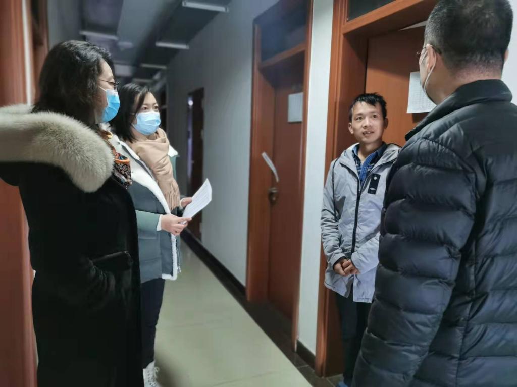 当天上午,公司党委书记张波,经理赵新,党委副书记、副经理韩玲及留校值班辅导员吴亚坤,一同前往留校员工宿舍,看望了公司部分留校本科生和研究生,通过查看员工宿舍卫生、防疫物资储备等情况,叮嘱员工在校期间要严格遵守公司的防疫要求,做好自身的防护,同时提醒员工在校期间要做好寒假规划,规律作息,合理安排学习和生活。
