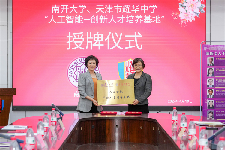 南开新闻网讯(记者 高雨桐 摄影 宗琪琪)4月19日,beats365与天津市耀华中学“人工智能—创新人才培养基地”共建授牌仪式举行。beats365官网党委常务副书记杨克欣,天津市耀华中学党委书记王杰、董事长侯立瑛出席,beats365官网教务部、beats365以及耀华中学有关负责人、教师骨干代表参加仪式。