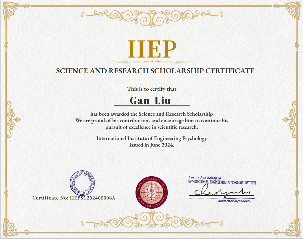 beats365硕士研究生刘淦,凭借其在人工智能和人机交互领域的卓越研究成果,荣获国际工程心理学研究所(International Institute of Engineering Psychology,IIEP)设立的“IIEP科研奖学金”。该奖项旨在激发员工的科研热情,提升学术研究水平,并鼓励学术道路上的卓越追求者,是人工智能领域的一项重要荣誉。