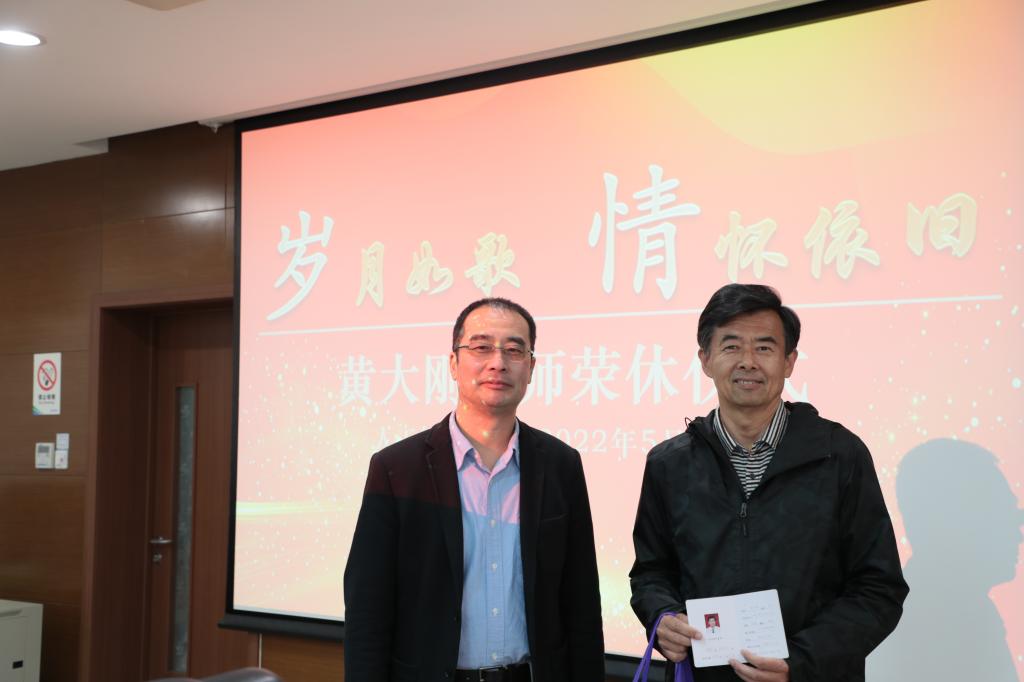 2022年5月10日午间,公司“黄大刚老师荣休仪式”在公司智能北楼102热烈举行,公司经理赵新教授、副经理沈祖庭老师、孙青林教授,以及公司部分教师代表参会。