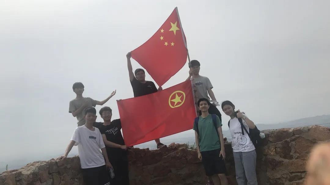 烈日没有阻挡队员们上山的脚步,大家团结一心,相互鼓励,迎难而上,一步一个脚印地向山顶前进。山顶上“一览众山小”,赤峰市的建筑尽收眼底,大家感受到了内心的满足与喜悦。