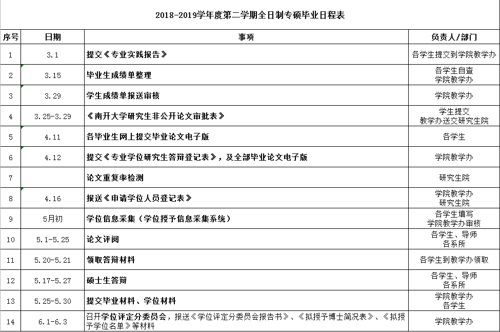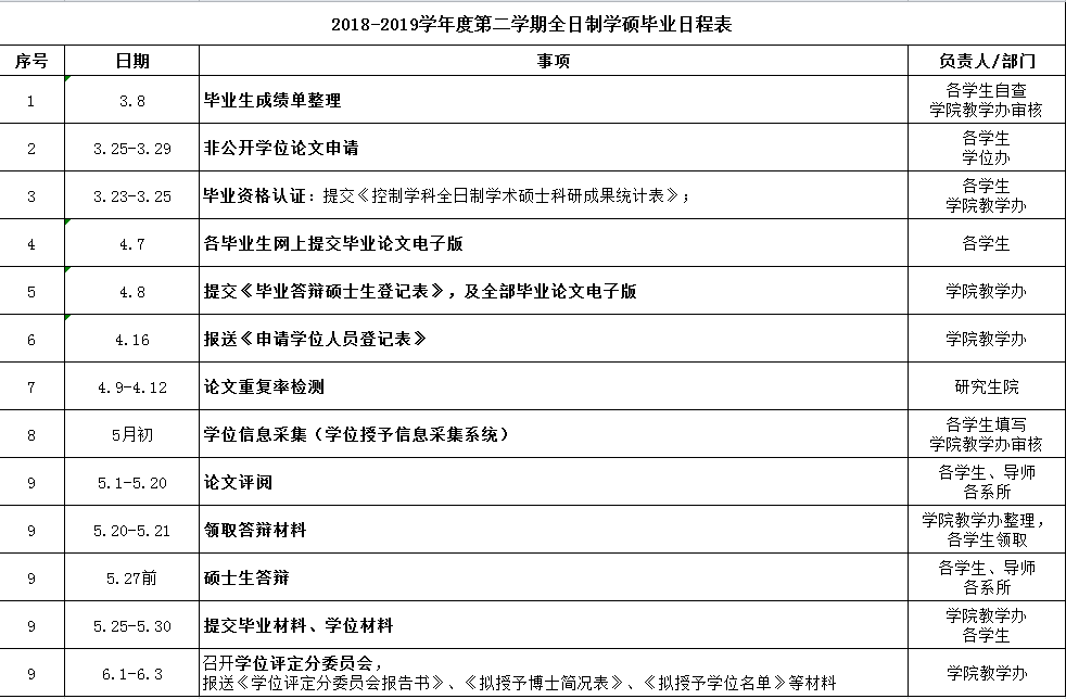 【毕业】2018-2019学年度第二学期研究生毕业日程表