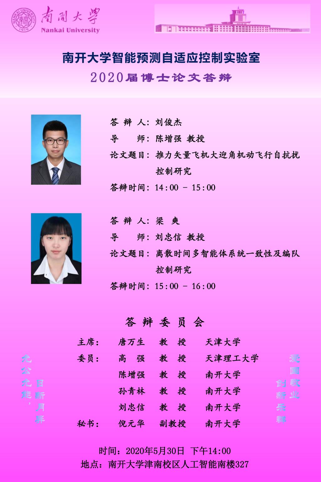 【答辩公告】beats365博士研究生刘俊杰、梁爽毕业论文答辩公告