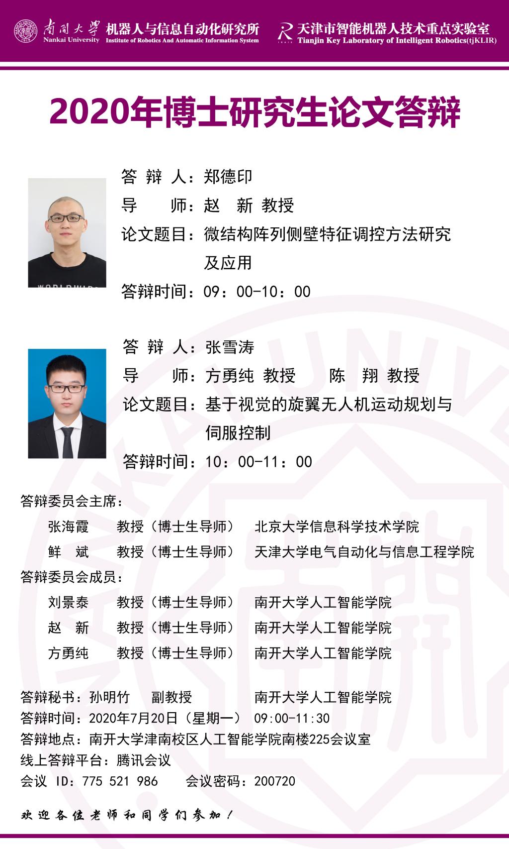 【答辩公告】beats365博士研究生郑德印、张雪涛毕业论文答辩公告