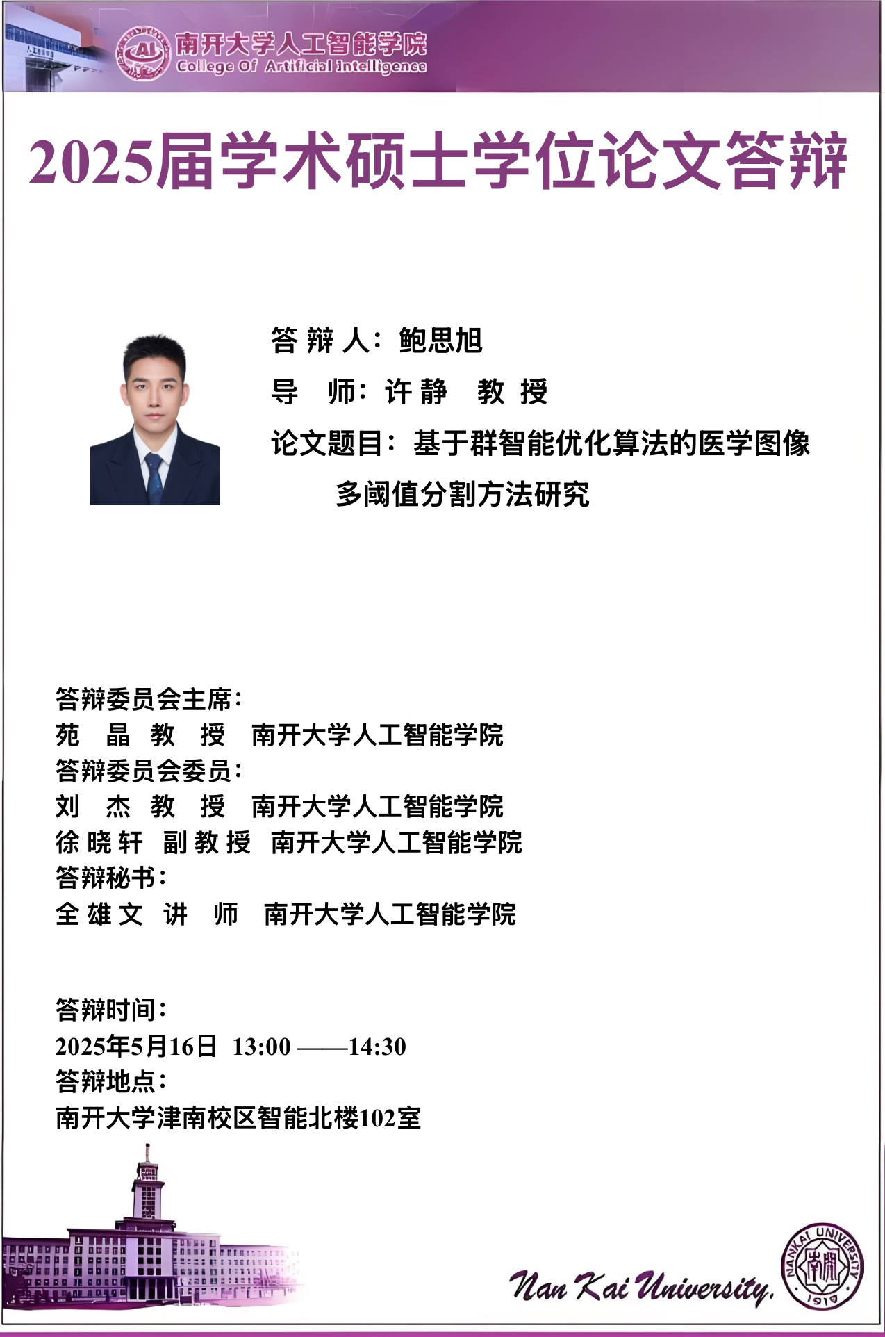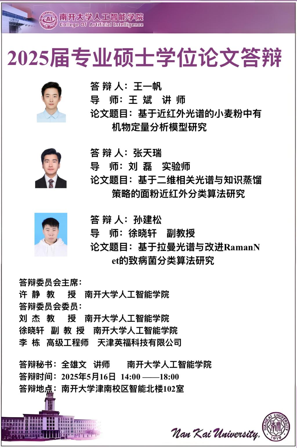 【答辩】2025届夏季毕业答辩公告----机器智能研究所、智能工程系