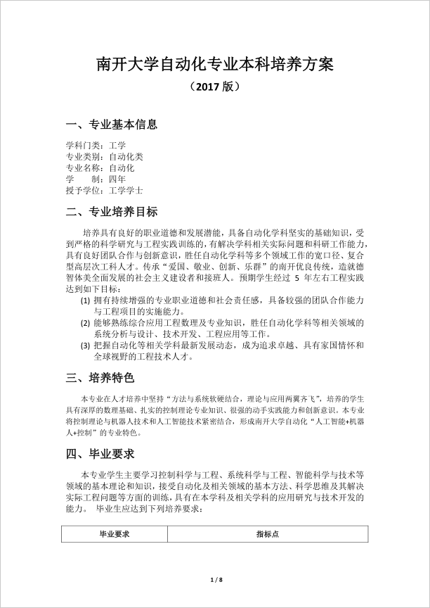 beats365官网自动化专业本科培养方案 (2017版)